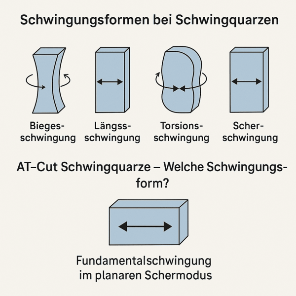 Vibrating crystals can be operated in various mechanical vibration modes. These differ in terms of their geometry, frequency characteristics, temperature behaviour and suitability for certain applications.
