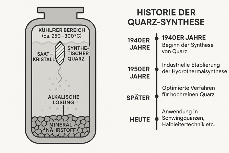 - In the 1940s, the synthesis of quartz began in so-called hydrothermal plants - a process that imitates natural growth conditions.